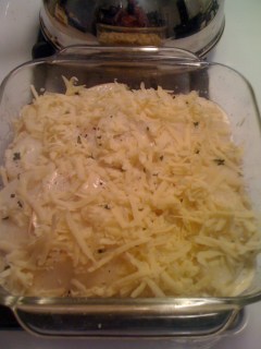When my date finally arrived, nearly an hour and a half later than he anticipated, he entered an apartment smelling most welcomingly of roasting chicken, garlic, thyme, and potatoes (and proof that I had not been trying to avoid cooking a meal for him . . .) These dishes were truly a snap to prepare, requiring very few ingredients, and I don’t think a homier meal exists. (Here I would very much like to insert a photo of how this lovely meal looked on my candle-lit table, but I’m afraid preoccupation with my hostessing duties caused me to forget the small detail of photo-taking.)