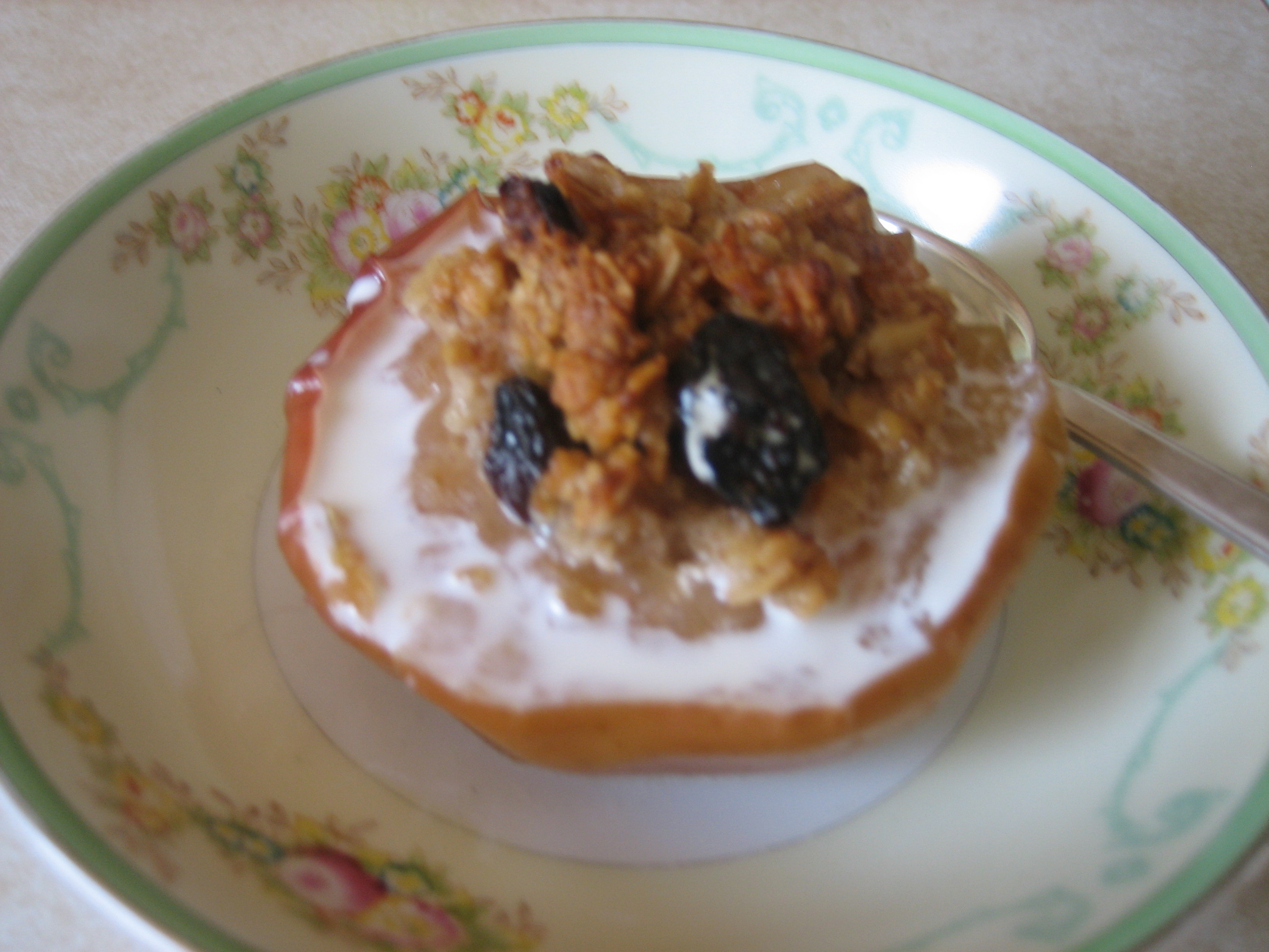 This is so good. It really hits the spot. The baked apples are good for breakfast and a snack later on in the day. I prefer them with a little half & half drizzled on it. Pretty easy to make and pretty yummy. And as my mom would say, “And good for you!”