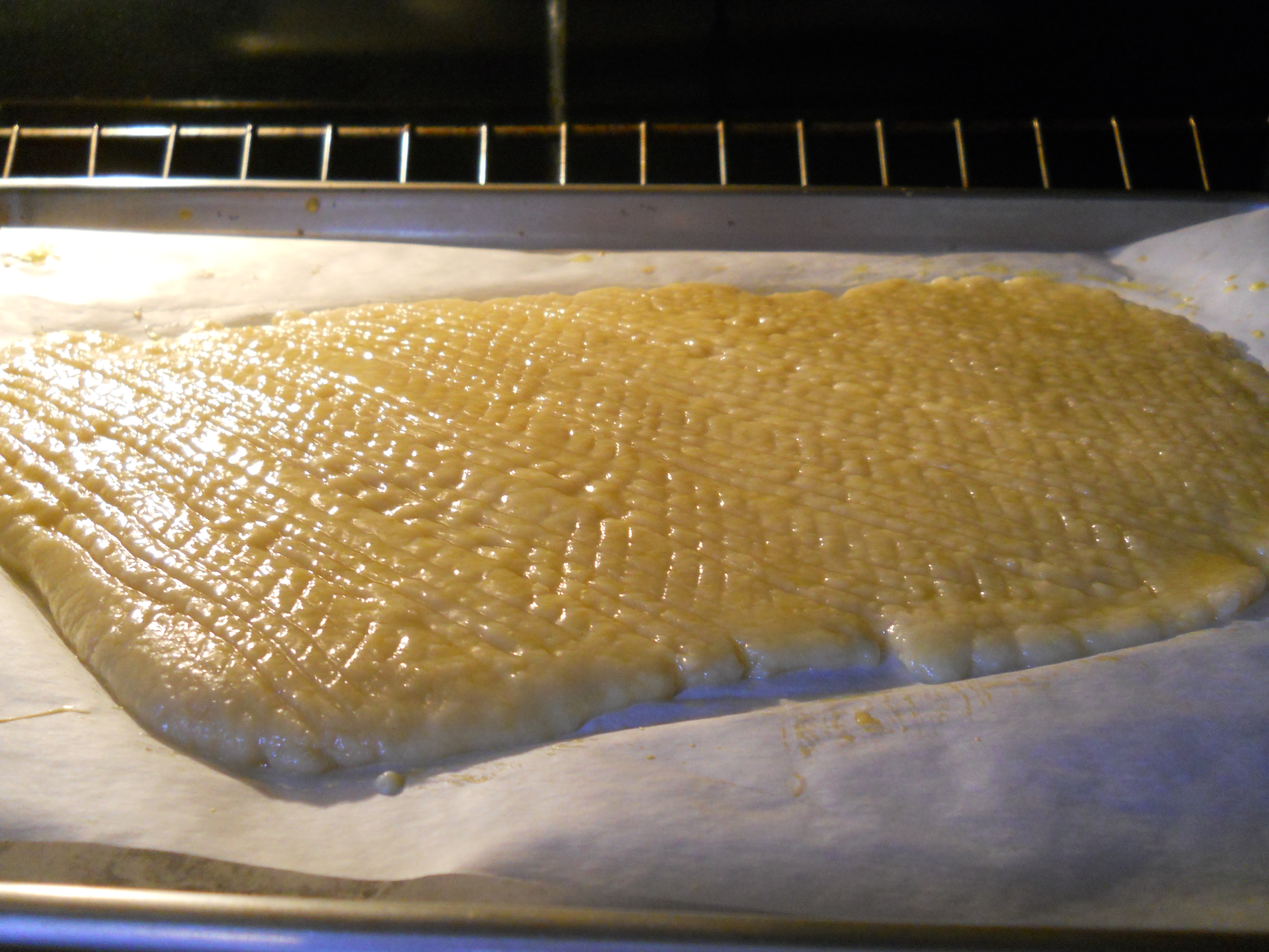 Let me report that this has to be some of the least labor-intensive baking I have ever encountered. Toss the first four ingredients in a food processor, scrape the dough into a rectangle, refrigerate, roll into a flatter rectangle, paint on some egg wash, bake and break!