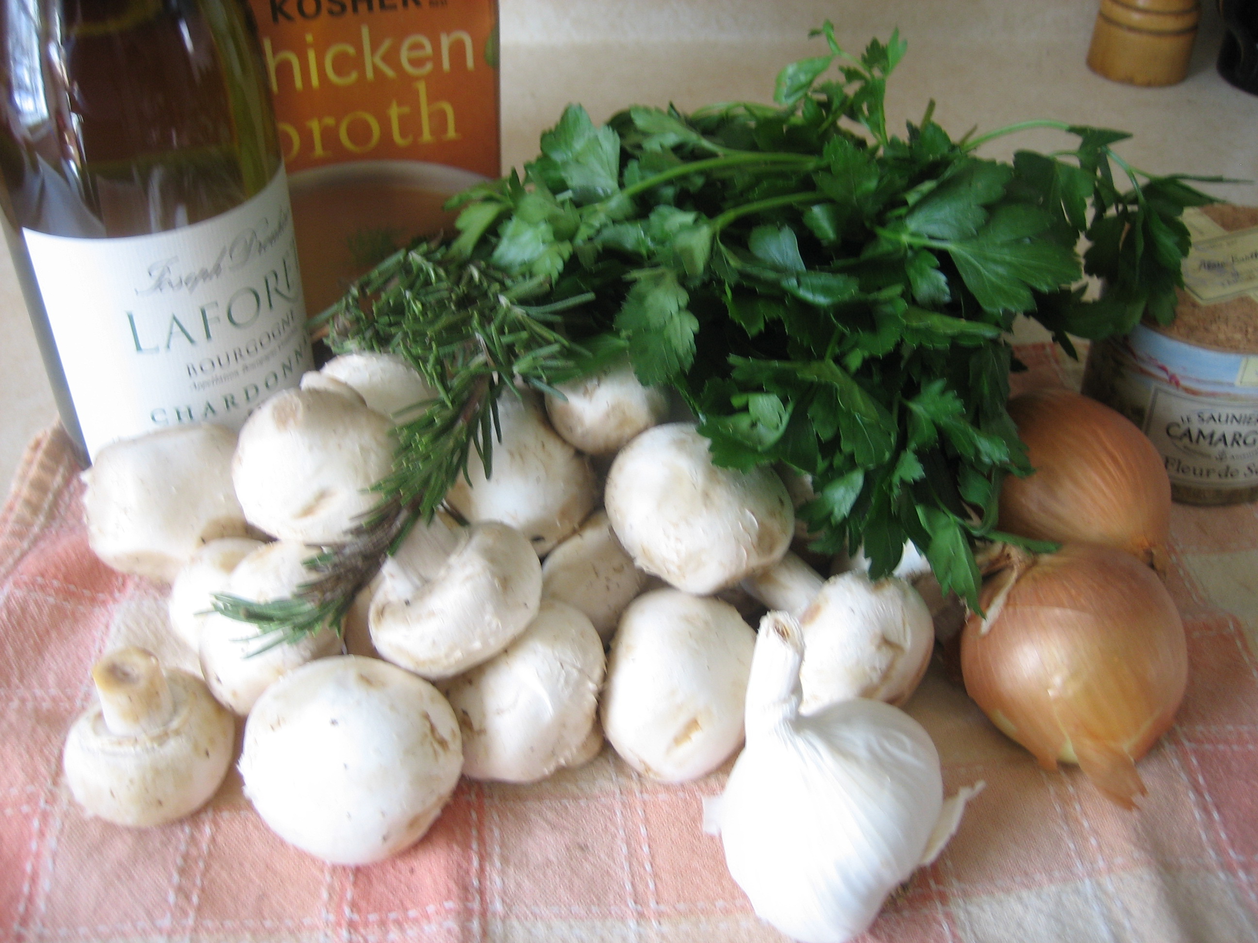 It was a bitingly cold day here in northern New Jersey, and in addition to something French, something warm was called for.  The fact that there were mushrooms involved made it an even easier choice, knowing, as I did, that it would be eaten by at least one mushroom lover.  As with most of the other Around My French Table recipes that I’ve tried so far, this one calls for relatively few ingredients (onions, garlic, mushrooms, rosemary, parsley, white wine, and chicken stock) and is prepared easily and quickly.  An extra bonus is the smell that will greet you when you return from running outside to the car, if you have left the soup simmering away on top of the stove in the meantime.  Serve this soup with a crusty peasant bread and a peppery arugula salad, and you (and your guest) will be happy.